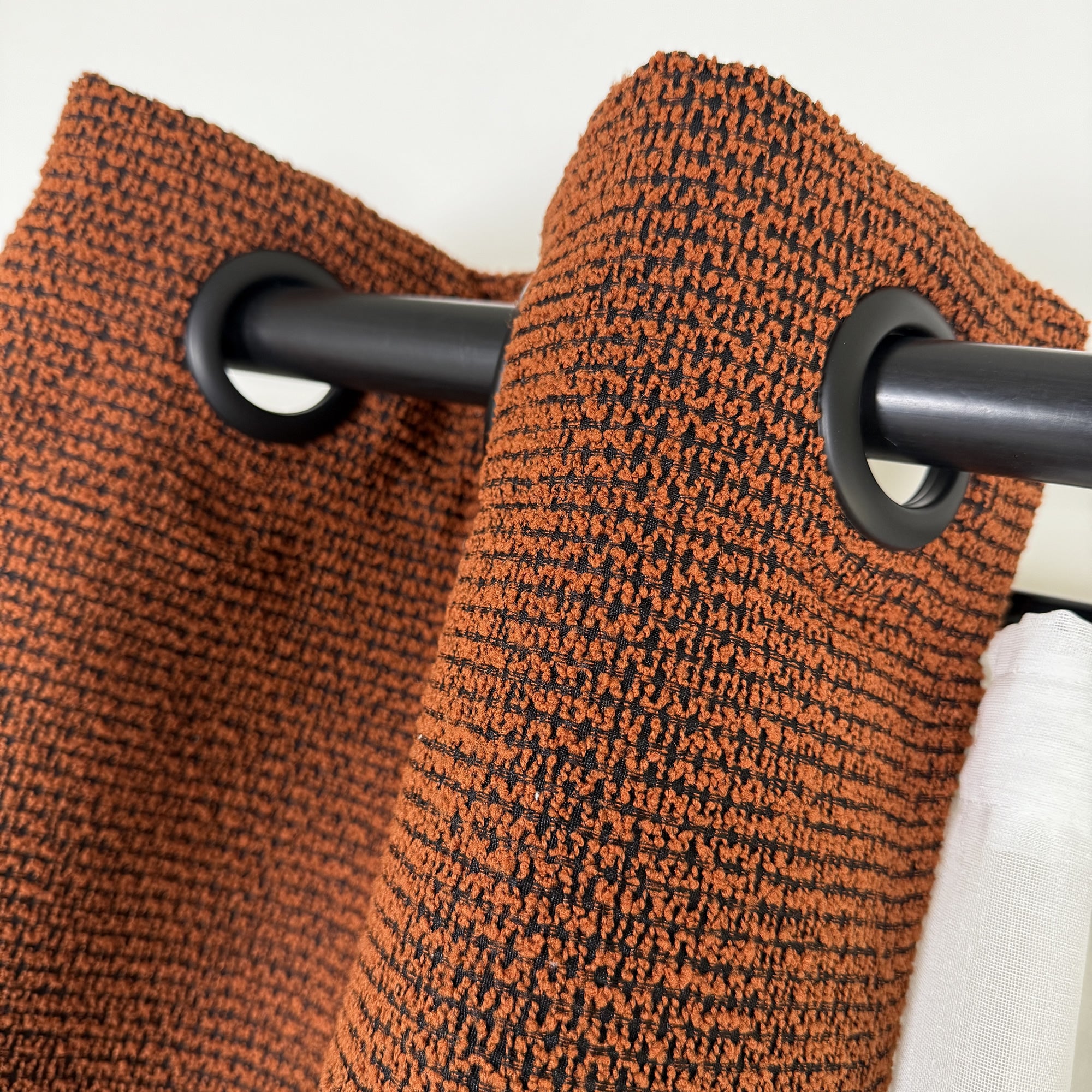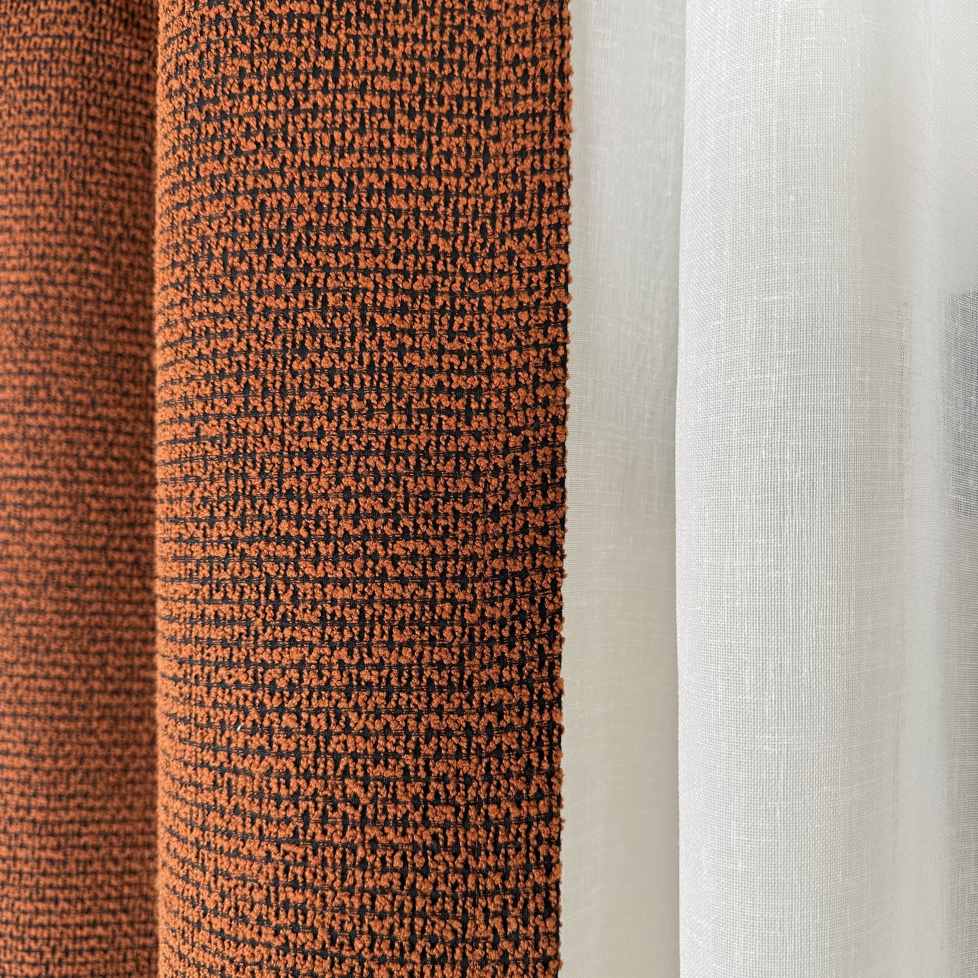 The CARLETA curtain collection brings tactile warmth to modern interiors with its thick jacquard weave and boucle-style texture. Its structured yet organic surface adds dimension and coziness, making it ideal for both rustic and contemporary spaces. With 10 rich shades and a seamless 300 cm width, CARLETA panels are custom-made to fit your exact space — and can be enhanced with optional blackout or polycotton lining for added performance.